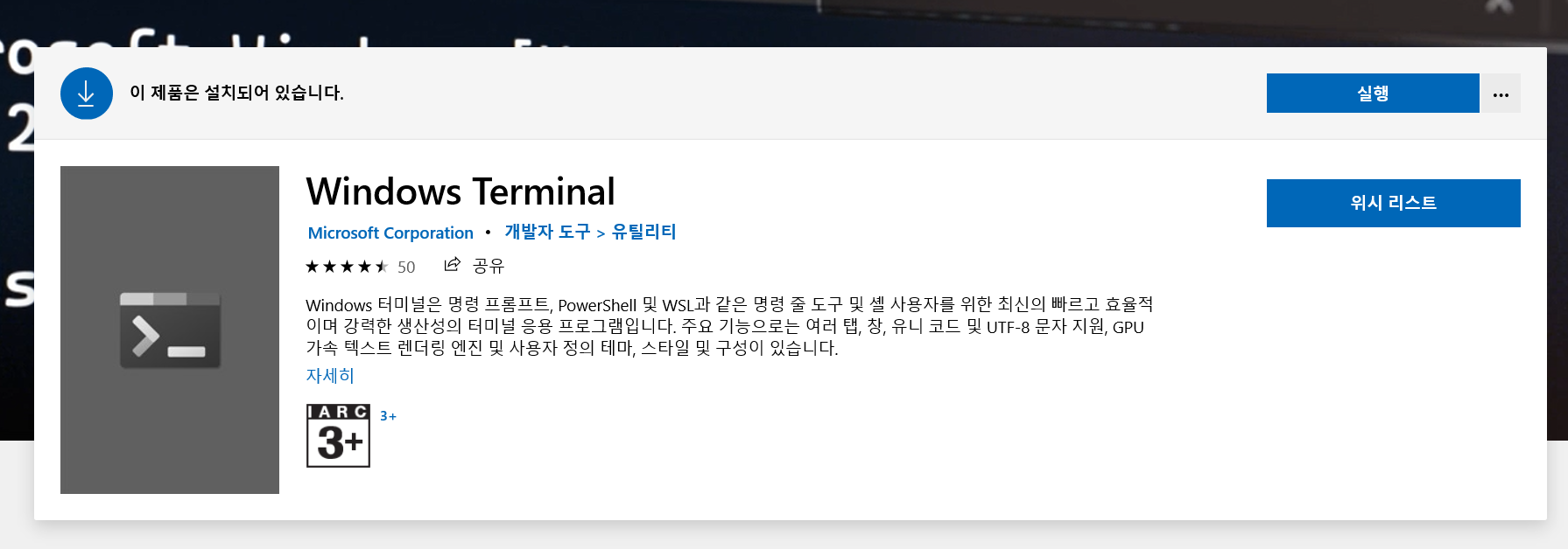 WSL2를 활용하기 위해서는 우선 윈도우 터미널을 설치하여야 합니다.