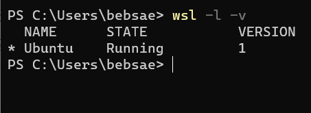완료되었다면 wsl -l -v명령어를 통해 버전을 확인해보세요.