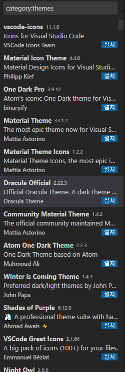 저는 Dracula official 테마를 설치해보겠습니다.
