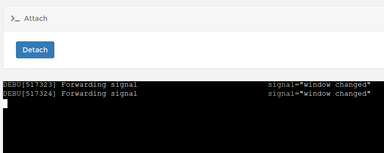 여기서 Attach를 누르시면 아래와 같은 터미널 화면이 뜹니다.