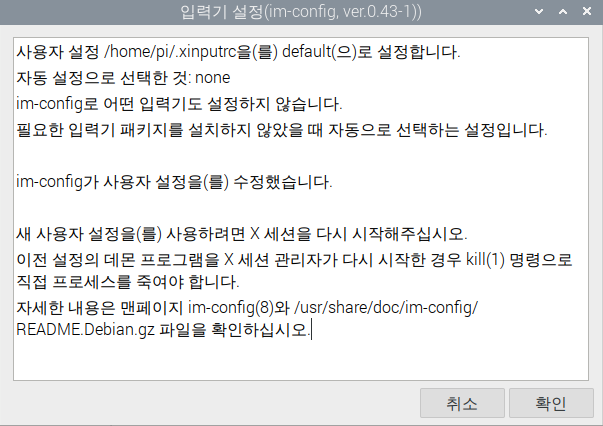 아래 명령어를 입력해서 im-config설정파일을 열어주세요.