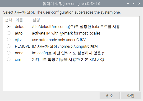 fcitx는 라즈비안의 언어가 한글이어도 정상적으로 한/영 전환이 가능하고, 한글 입력이 매우 잘되니 편리한 라즈베리파이 사용을 위해 다음 설명을 잘 따라와주세요.