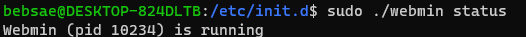마지막 sudo ./webmin status 명령어를 입력했을때 다음과 같은 메시지가 떠야합니다.