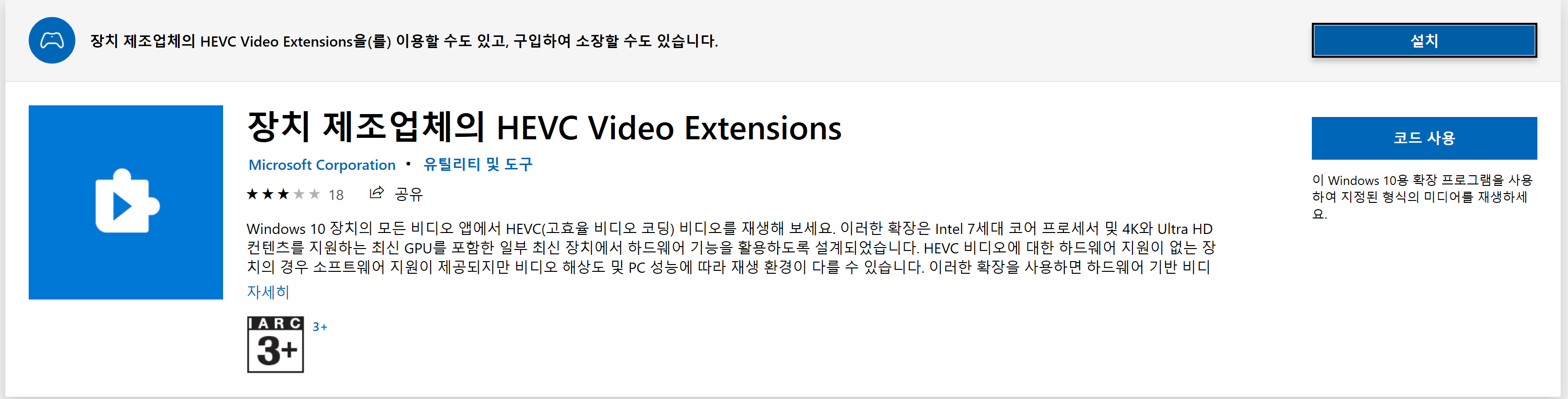 원래 해당 코덱은 윈도우10에서 기본으로 제공되던 코덱이었습니다.