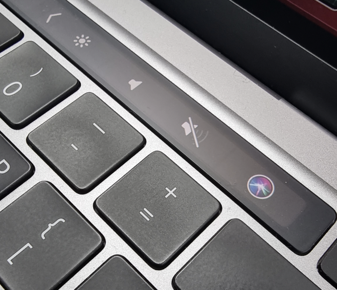 또한 13인치 사이즈답게 오밀조밀하게 모여있는 키보드와 광활한 터치패드, 상단의 기능키 터치바도 아주 만족스러웠습니다.
