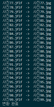 JPG확장자로 변경해줘야 했기 때문에 파이썬 코드로 변경을 시도했습니다.