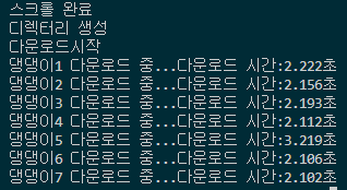 print(keyWord + str(count) + " 다운로드 중...다운로드 시간:" + str(time.time() - start)[:5] + '초')