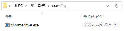 저는 바탕화면의 crawling폴더에 압축을 풀어주었습니다.