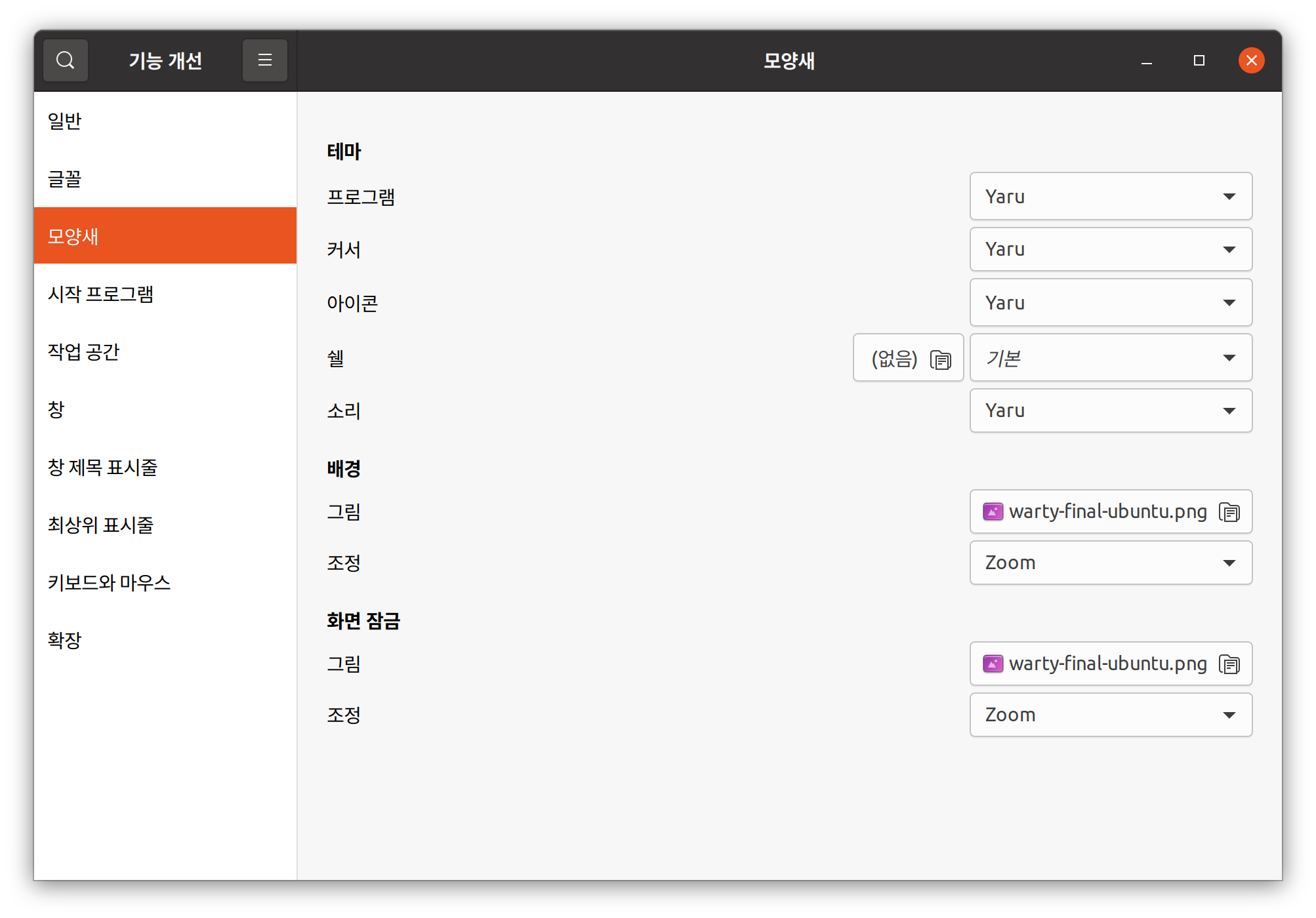 'Gnome Tweak Tools'를 실행해서 '모양새' 탭으로 들어갑니다.
