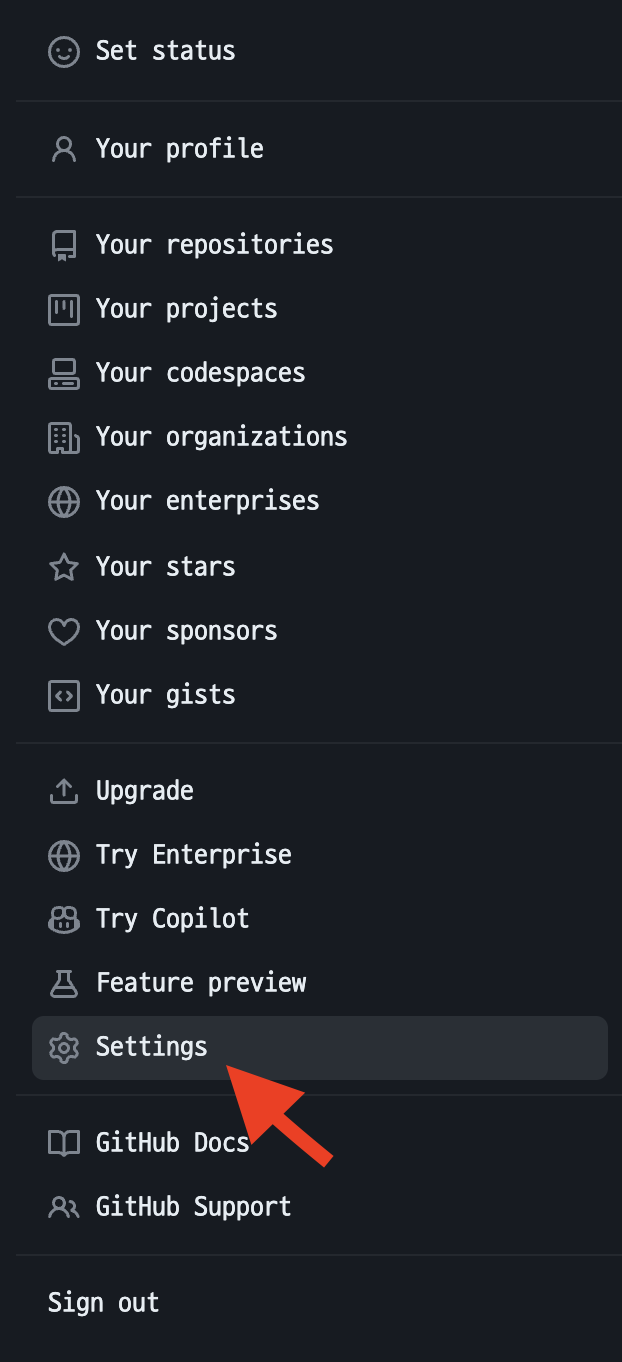 토큰을 발급받는 방법은 우선 Settings에 접속한다.
