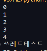 이제 test.py를 실행하면 위와 같이 for문이 행되는 중간에 print문이 실행된 것을 확인할 수 있습니다.