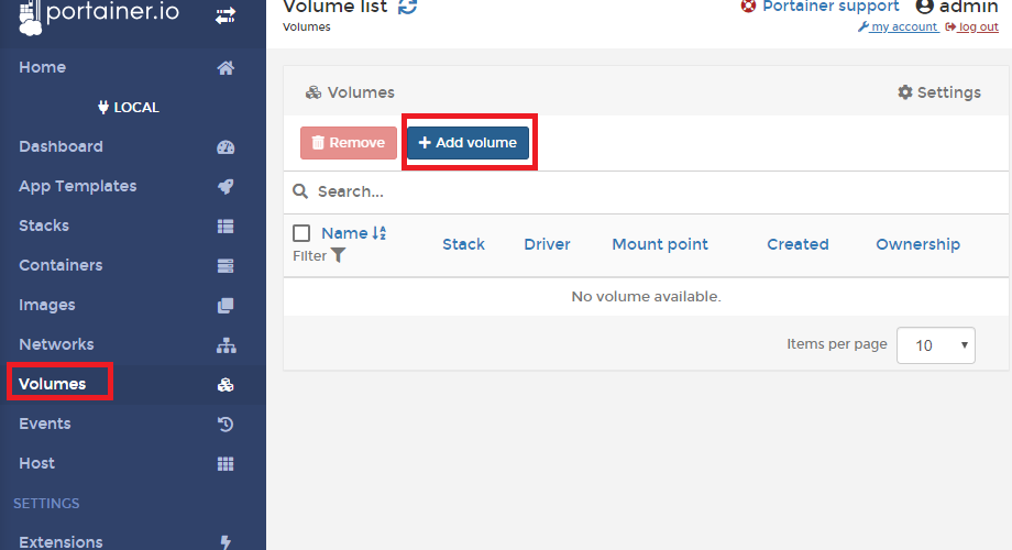 좌측의 Volumes탭을 클릭하고, Add Volume버튼을 눌러줍니다.