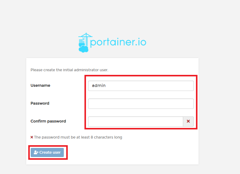이제 포테이너 설치가 끝났으니 웹 브라우저의 주소창에