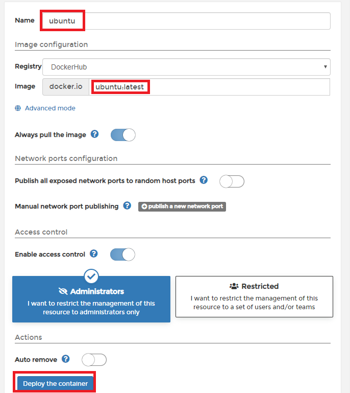 하단의 Deploy the container버튼을 눌러줍니다.