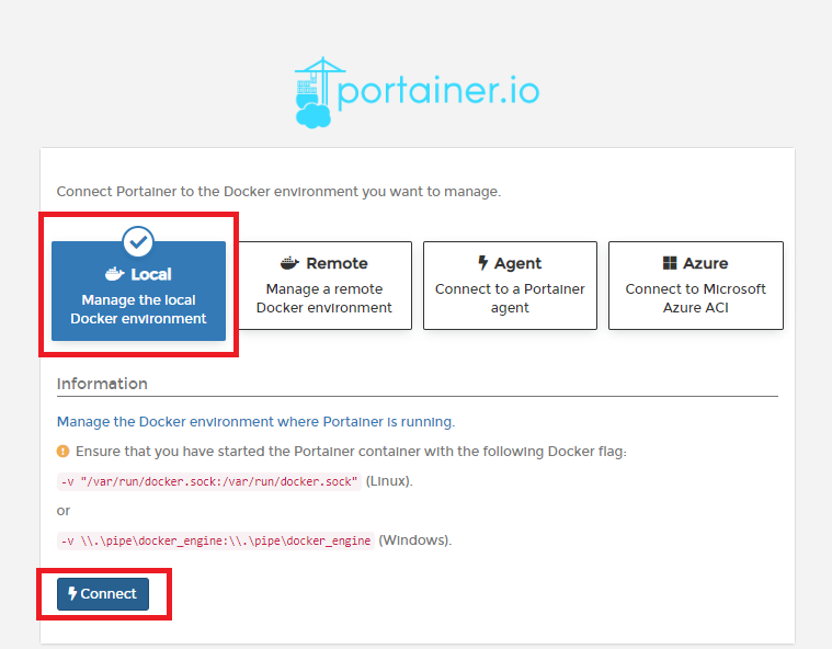 다음과 같은 명령어로 포테이너의 이미지를 다운로드하고, 도커에 마운트시킵니다.