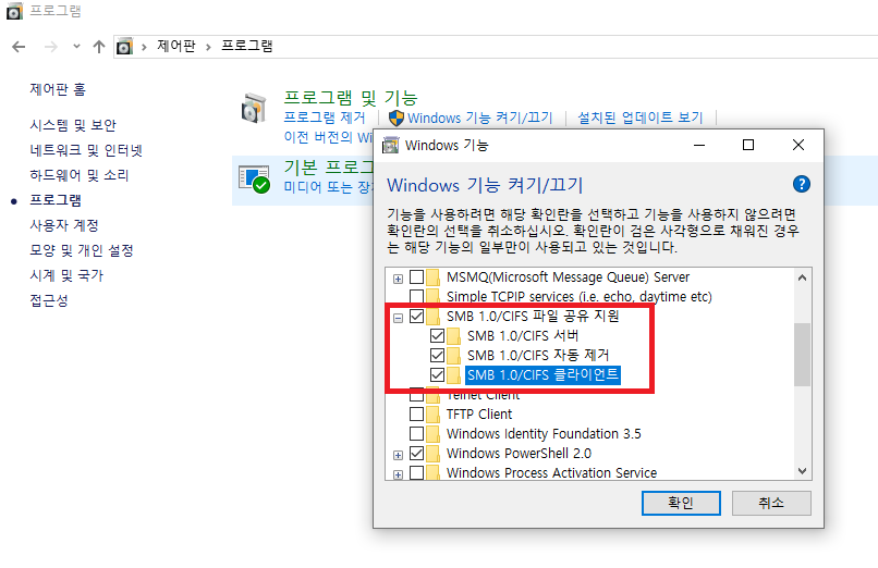 4. 윈도우10에서 삼바연결이 안될때
