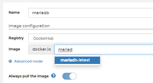 image칸에 mariadb를 입력하시고, Pull the image버튼을 눌러주세요.