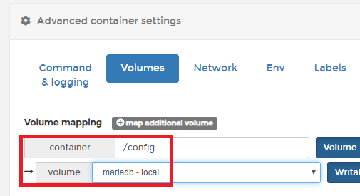 volume 항목은 아까 생성해둔 mariadb볼륨을 선택해줍니다.